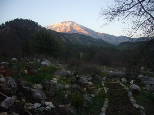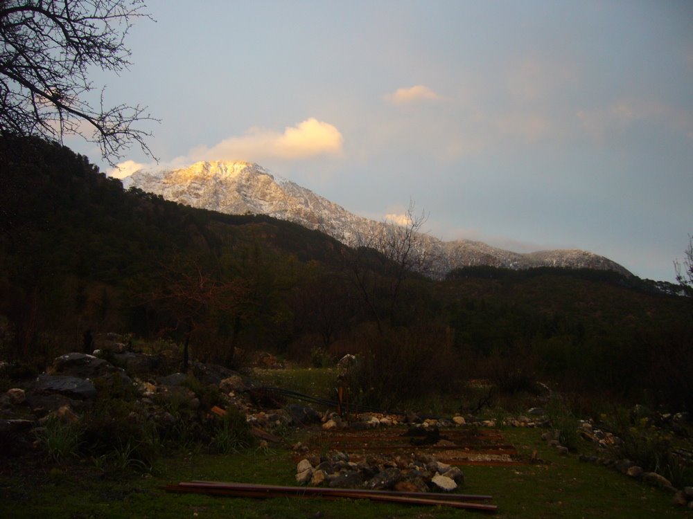 >Yesterday morning, I spoke to my mom on the phone and she mentioned that it was snowing in istanbul. “i hope it doesn’t snow down by you,” she said, and i laughed her off. the forecast said rain for us, but how could it snow when the weather has been in the 50s lately? the rain started early, so we took off to town to do some marketing and then stopped off at sundance camp for lunch. while we were there, someone said that a friend on a neighboring mountain had called to say that it was snowing. we peered out the window and the hills were white! when we got home, there was a bite to the air (although i feel no pain since i started wearing a thick, itchy ragg wool sweater of my dad’s — i even sleep in it. i take it off only to change my shirt once in a while) and the hills right above us were white with snow! it was gorgeous and clearly, mother knows best.