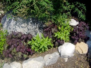 summer is basil weather, and although many things do not work out the way i want them to in the garden, i have to say that i get great satisfaction from my basil and shiso bed by the kitchen: