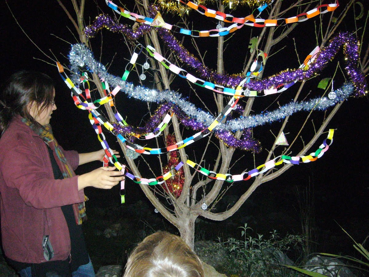 We decorated the peach tree by the kitchen, and even had a string of lights. Baki was very enthusiastic.