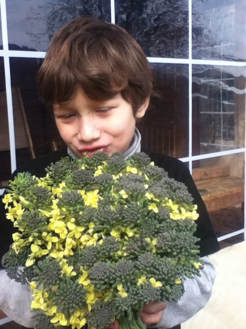 It had never actually occurred to me before this happened that the foliage of broccoli trees was actually flower buds. In retrospect I guess that should have been obvious. So I was not only horrified but also shocked to see the broccoli about to enter full bloom. Still, if there is anyone else out there as negligent as me, don’t lose heart; the broccoli was absolutely delicious, flowers and all (Baki took a few big bites before handing over his bouquet). I’ll be sticking to runner beans and a few kinds of bush beans (edamame, black chickpea) this year.
