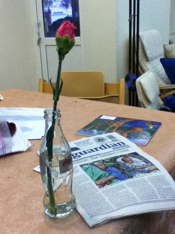 I usually buy raw milk from a dairy farmer at the Thursday market and pasteurize it at home, but I went out to the garden today. This evening, I stopped by the supermarket to buy a bottle of milk to tide us over. On my way out, I was waylaid by a man in a suit… And handed a carnation and a diet coke for the distinction of being a woman on March 8! It was a little corny, but I have to admit that it did make me smile. Happy women’s day, all!