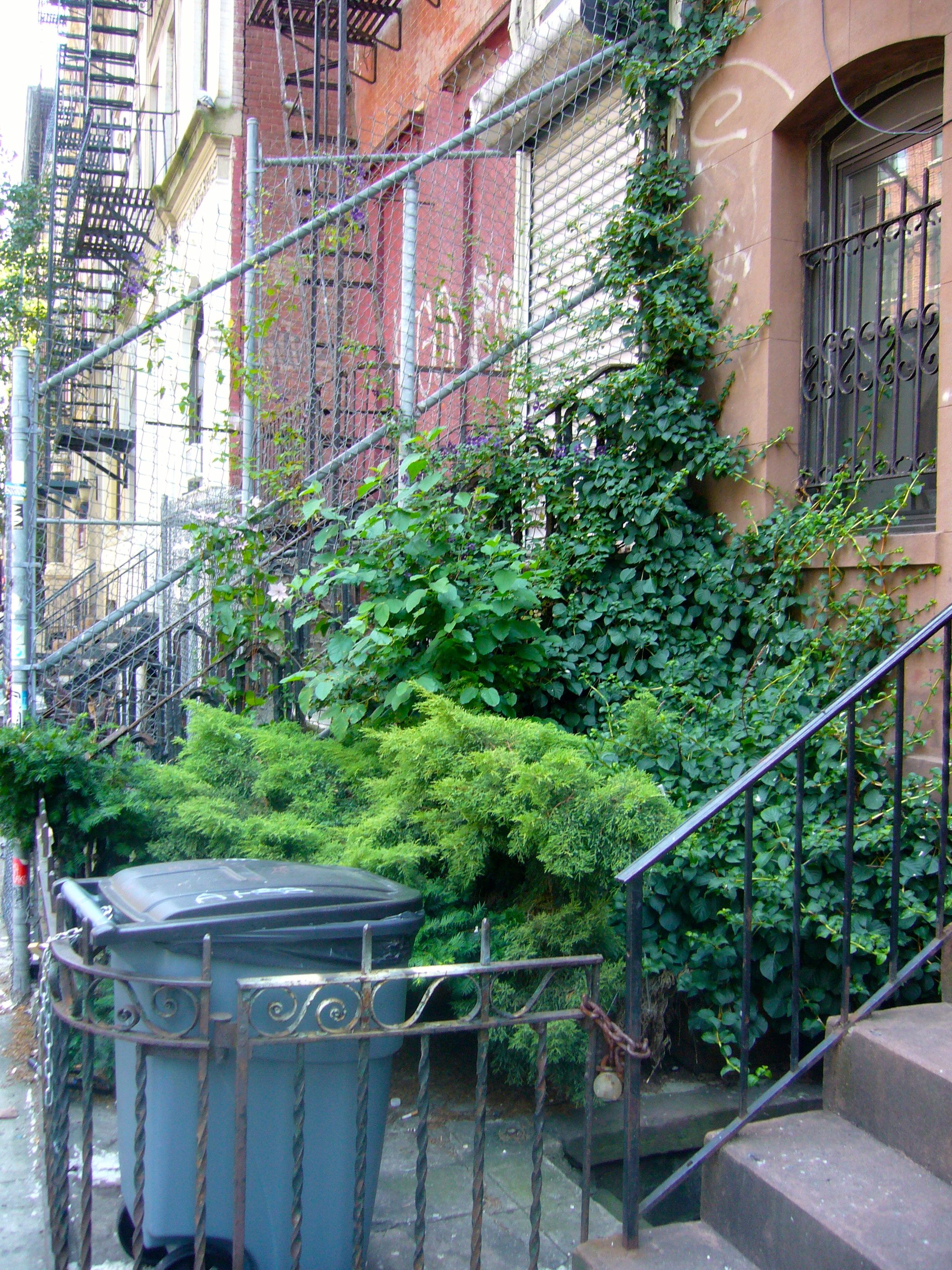 And these clematis growing by the garbage reminded me of the Chinese imagery of the lotus as a symbol of purity because although it grows in the mud it rises above the water and its flowers open. (My lotus back home is probably flowering right now.)