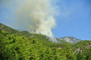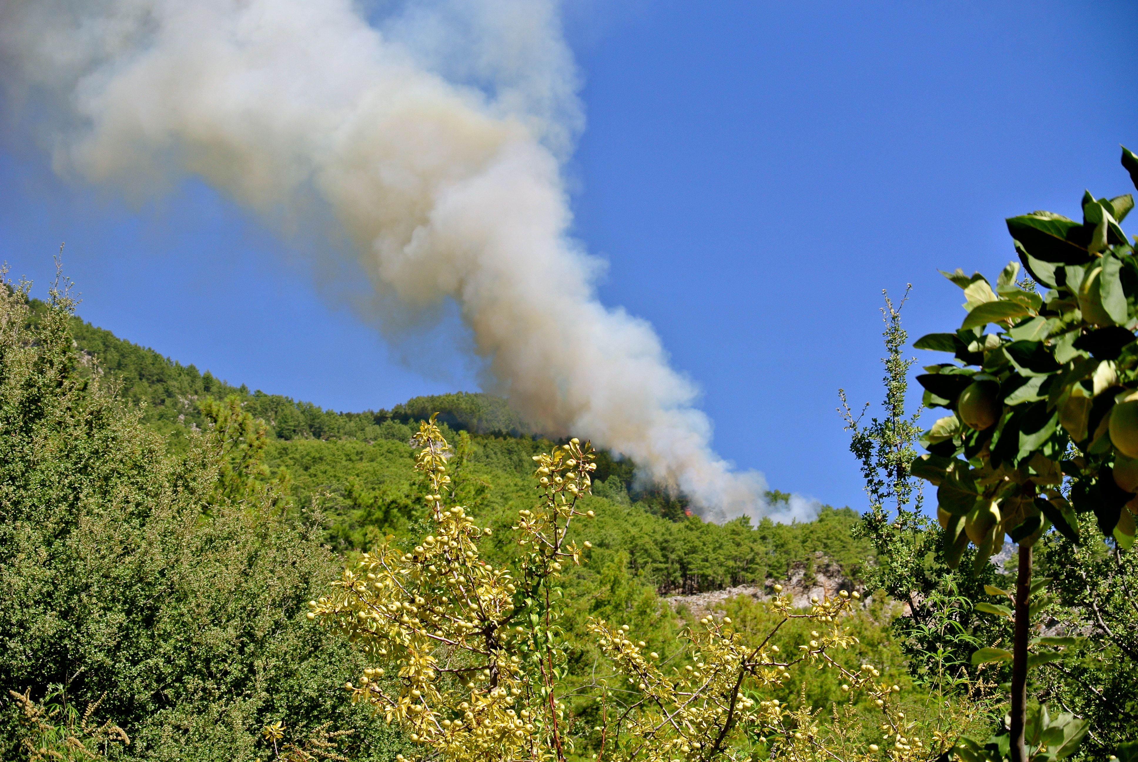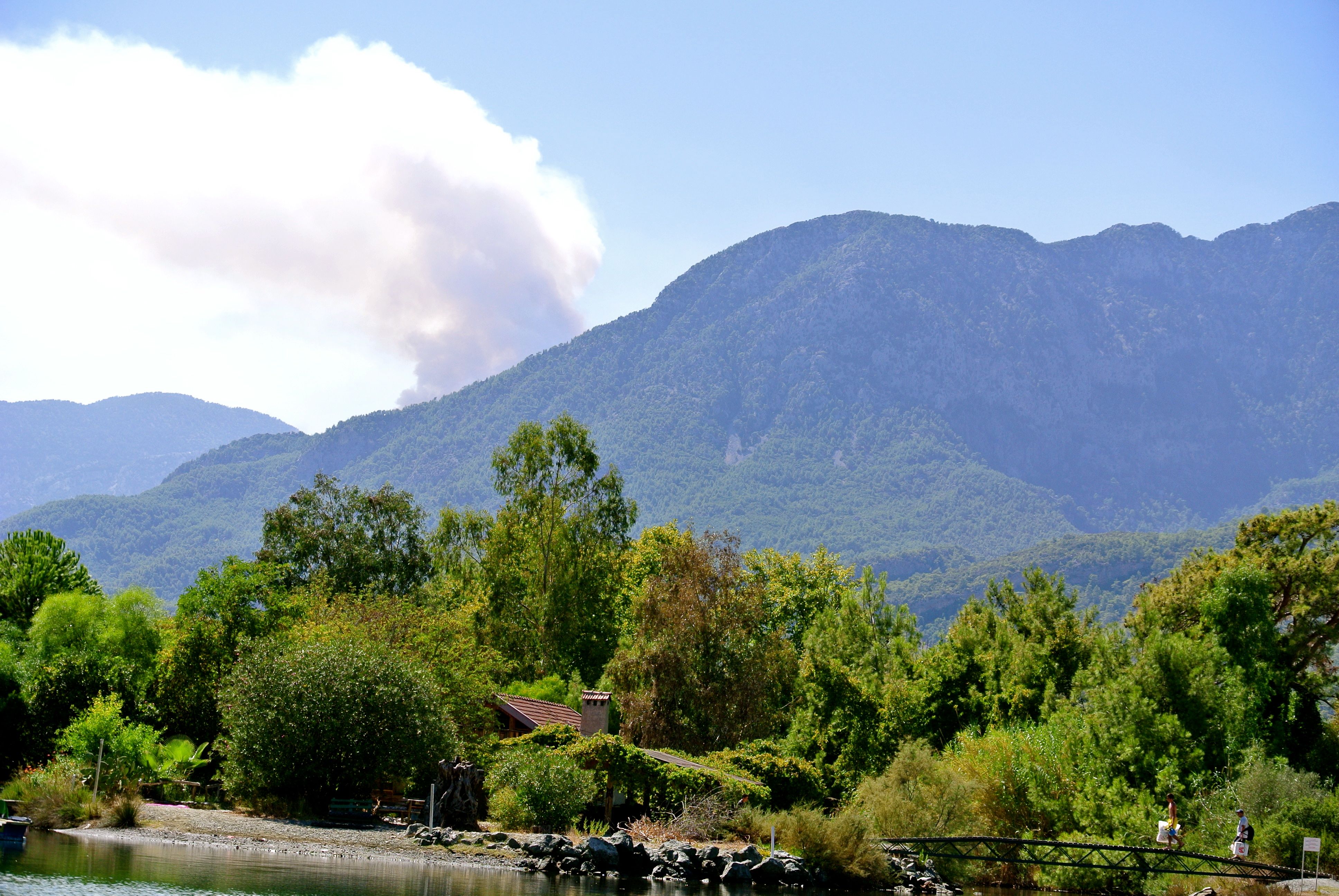 The garden was fine, if a bit smoky. We watered the greenhouse, made sure the chickens were fed and watered and that Damla the cat and Lulu the dog had bowls of food. The animals were all calm, which was reassuring. We took some toothbrushes and clothes, and headed back down, leaving matters in the hands of the foresters: