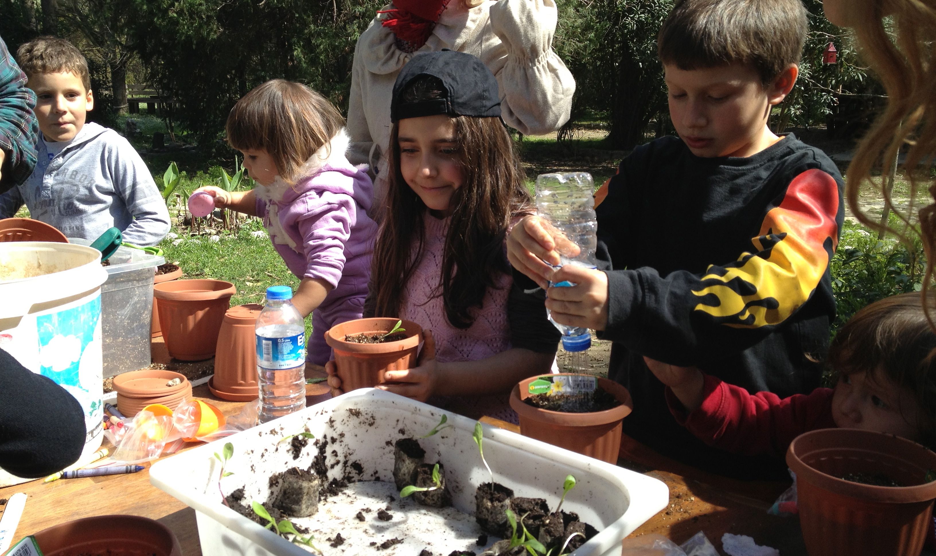 And I started some flower seeds (calendula and annual dahlia) for the kids to plant in pots and take home. The seedlings were doing really well and I felt quite pleased with myself… until the whole box of them fell off the top of the car as I was trying to get Kaya into his car seat to go down to Sundance. We lost a few, but there were enough survivors to go around.Image