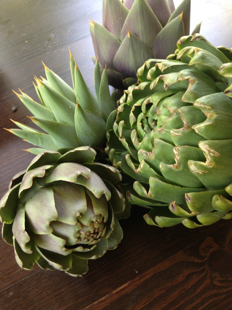 Fantastic photo of the artichokes! I know there are several varieties but none but one are available here. I know. How we suffer on this side of the Atlantic! 🙂 Thanks for the glimpse into your kitchen. By the way, love your new header photo, too.