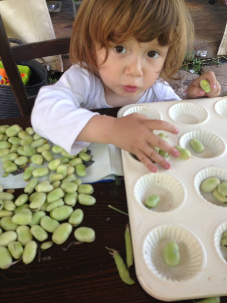 But my favorite picture is of the broad beans being sorted by your adorable daughter.