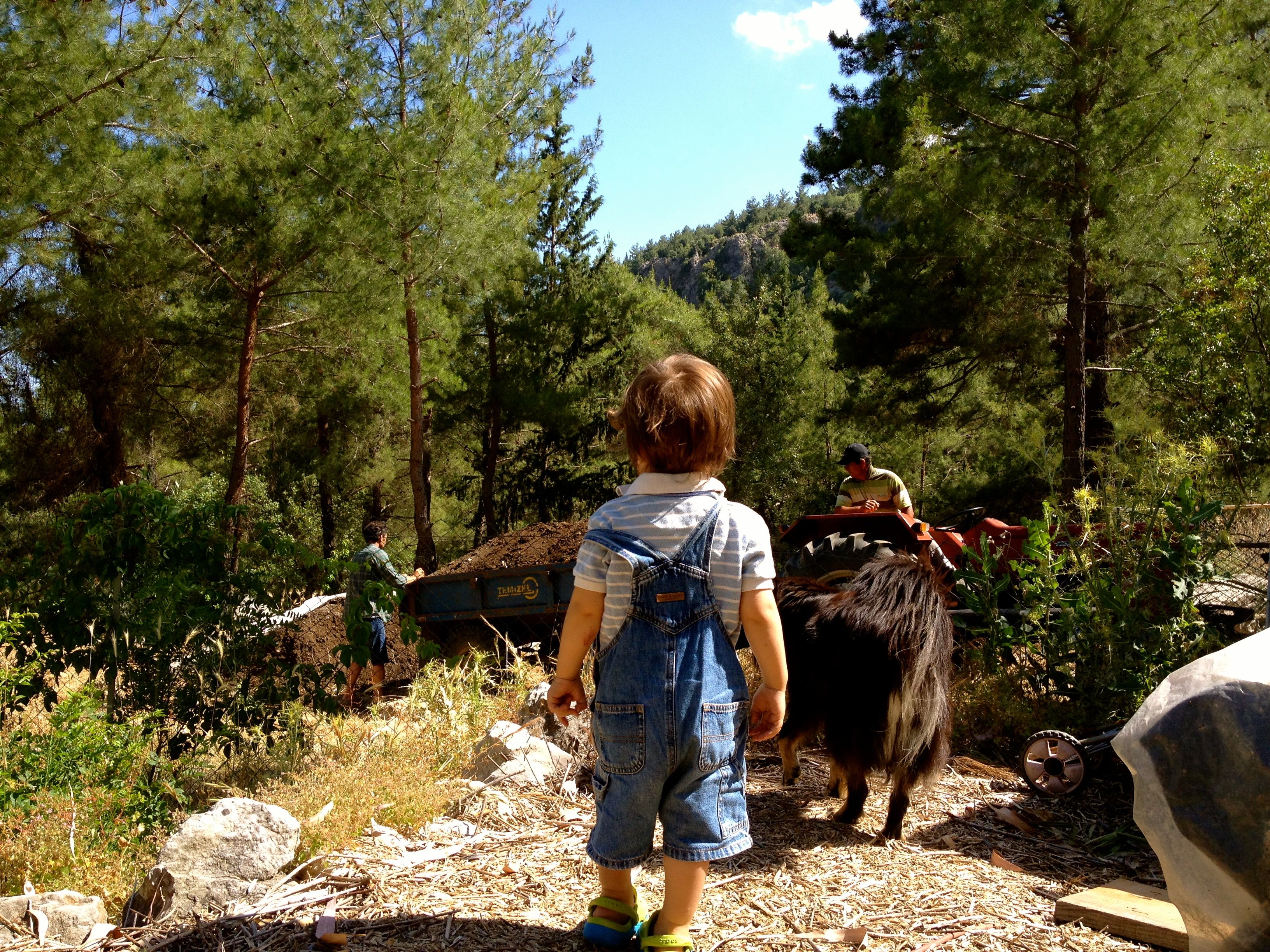 We got in a tractor load of manure from Senol, the dairy farmer that we buy milk from. Kaya and Lulu were on hand to watch. Just an ordinary moment in an ordinary day, but it is hard to forget that things are not so peaceful elsewhere. Then again, I suppose this is true on most days on this Earth.