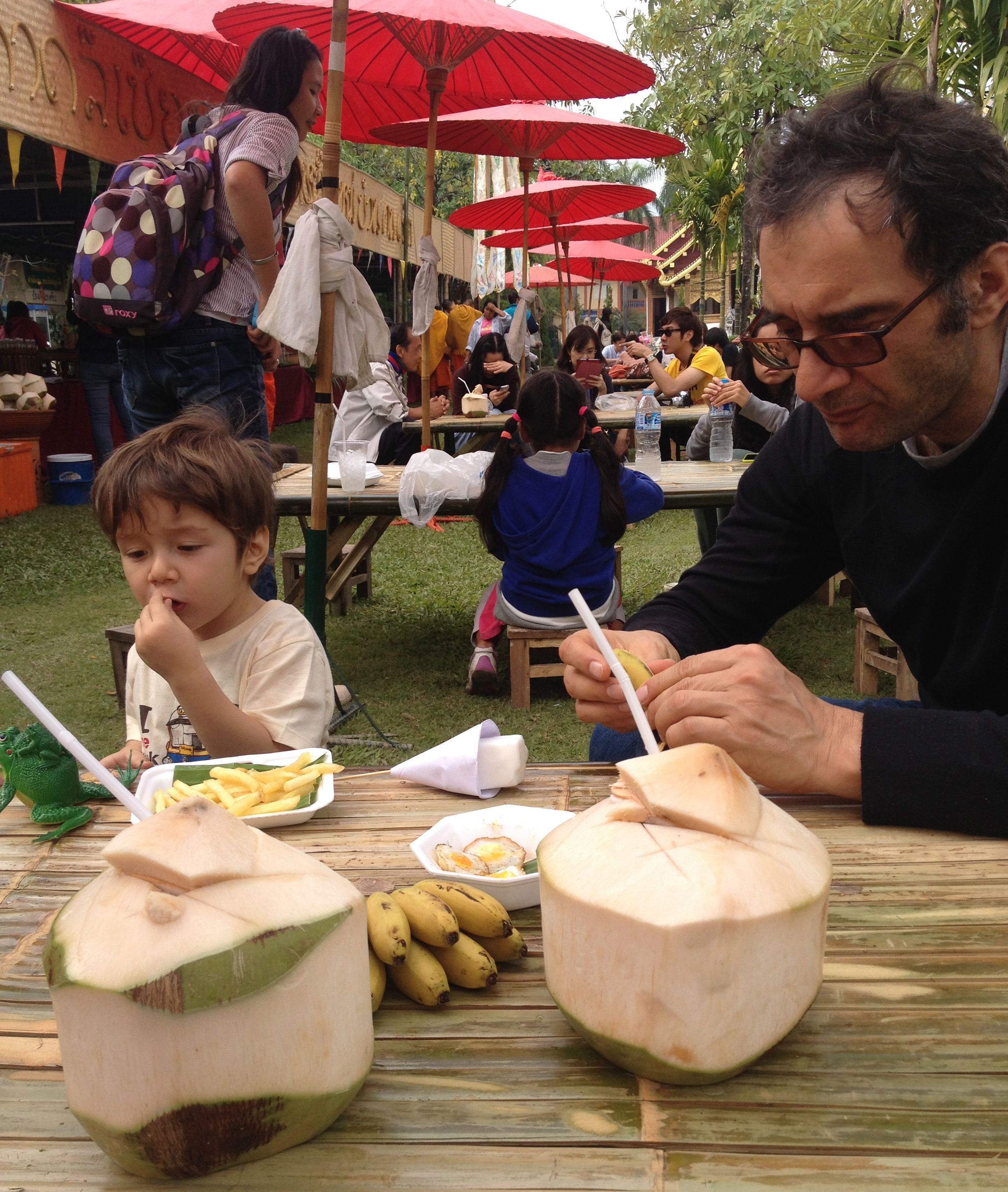Which is fitting, since Thailand, even in the midst of political protests, feels like a thoroughly mellow place. I felt this in the way that people were so gentle with the boys; in how we never got stressed out while we were traveling from place to place, usually the most joyless process imaginable; in the way that people in the markets were perfectly calm in dealing with us, even though we couldn’t speak more than three words of Thai. It was one of the easiest places to be in.