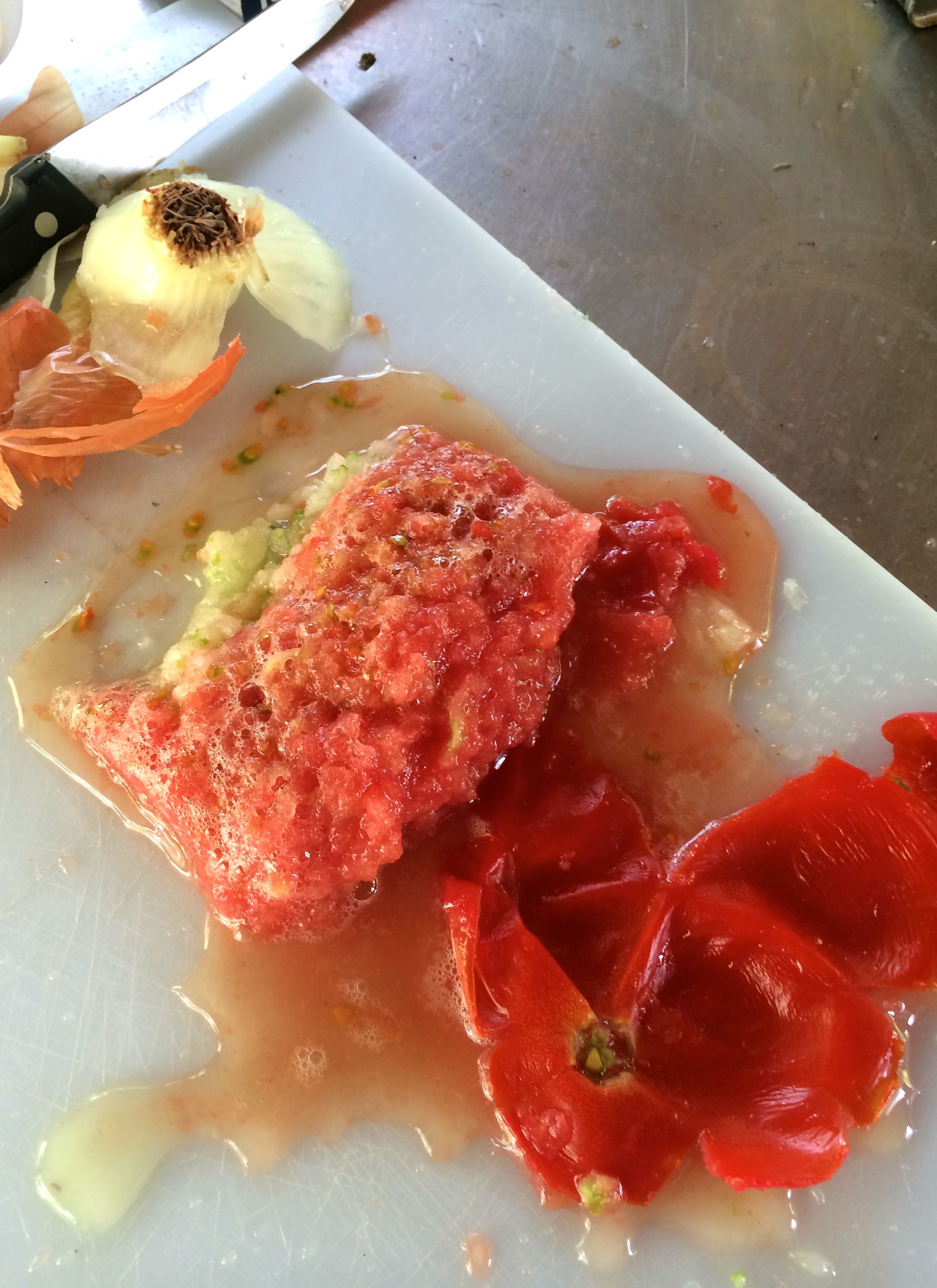 and then grate your tomato. You will end up with a nice, wet slurry: