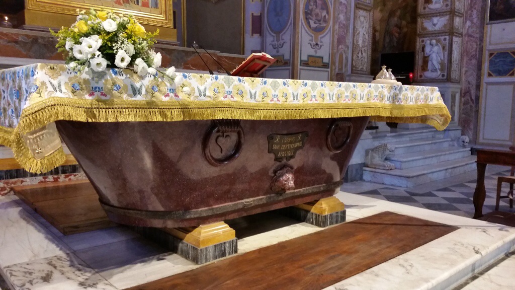As it turns out, it was. The body of St. Bartholomew has been laid to rest in this enormous porphyry bathtub: