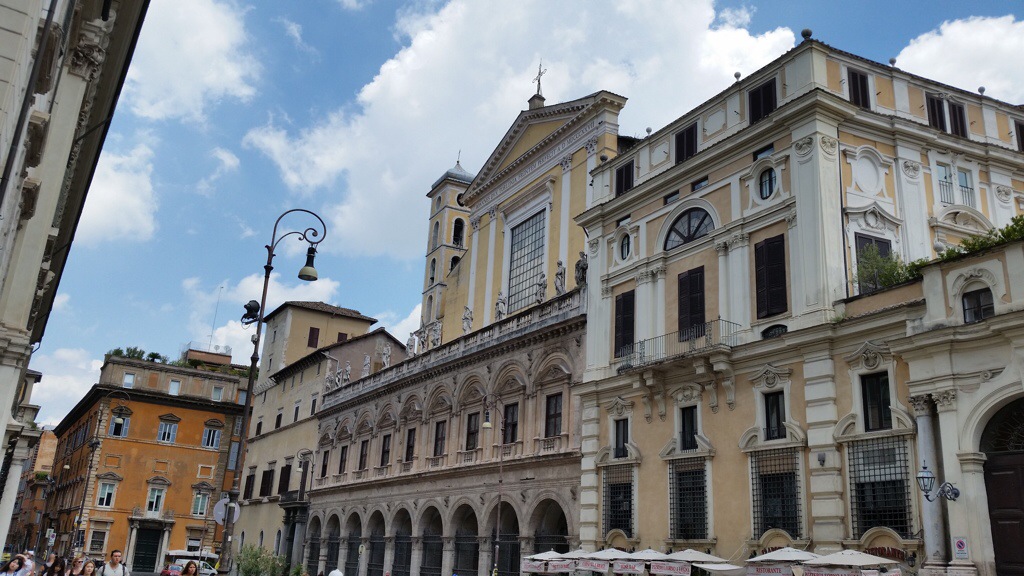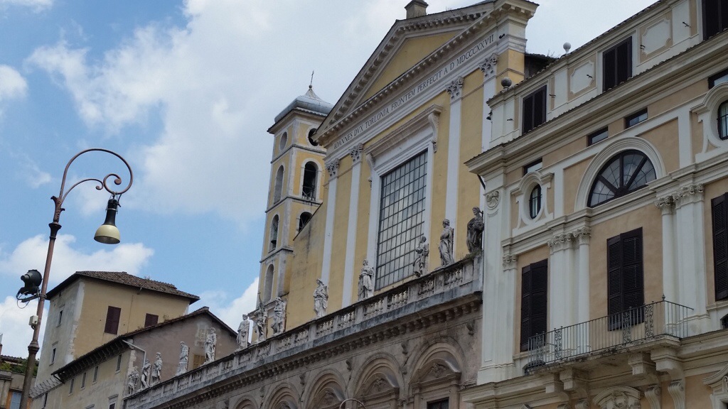 It wasn’t a very long walk to Piazza Santi Apostoli, and it was easy to tell we’d found our mark when we were greeted by a line of saints looking stately stop their perches.