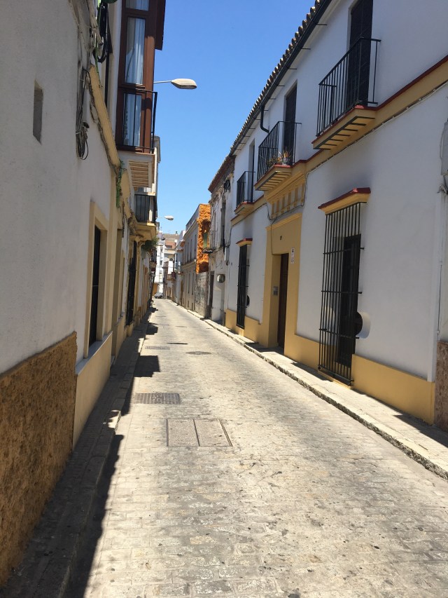 I walked through the hot, still streets of Jerez with Sema snoozing in her sling. At times it seemed as if everyone in the city must have been asleep too, and then I would pass a tavern and a wave of mellow conversation would drift out on to the street. It was sunny and warm, and I was in no rush – I was just going to take a tour of a sherry bodega. The previous night, our dinner had ended with a plate of creamy desserts and glasses of sweet Pedro Ximenez sherry. I can’t touch any dairy at all because Sema is allergic, so I had the glass of sherry. It turned out to be dessert enough on its own; it was intensely raisiny, with a flavor that seemed to be endlessly unfolding. We were sitting in an open courtyard at the side of a restaurant that let out onto a square presided over by a church. Overhead, small birds soared and chattered busily while down below my children and their cousins did the same thing, only earthbound. The skies were just deepening into night, although it was 10 pm. But I am getting ahead of myself.