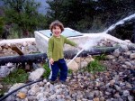 The newest member of our family, and certainly the most doted upon, Kaya is already involved in the garden. He and I water the garden together in the morning, and he likes to watch me while I weed and transplant. He loves nothing more than lying under a tree and staring at the leaves. Well, he might love milk more.